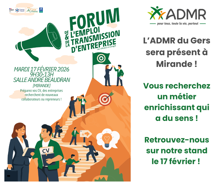 Inscriptions : Maison des services ADMR du Territoire du Fezensac - Tel : 05.62.06.52.66 - E-mail : admr.fezensac@admr32.fr